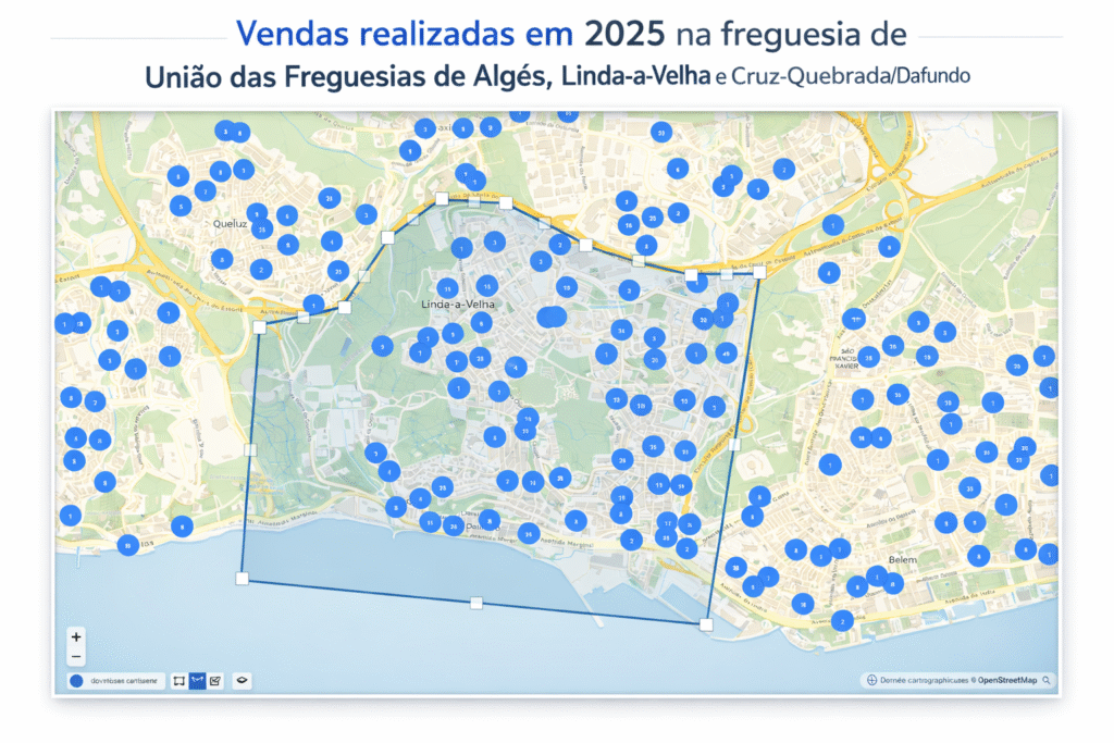 Leitura local baseada em vendas reais (Algés · Dafundo · Cruz-Quebrada · Linda-a-Velha).